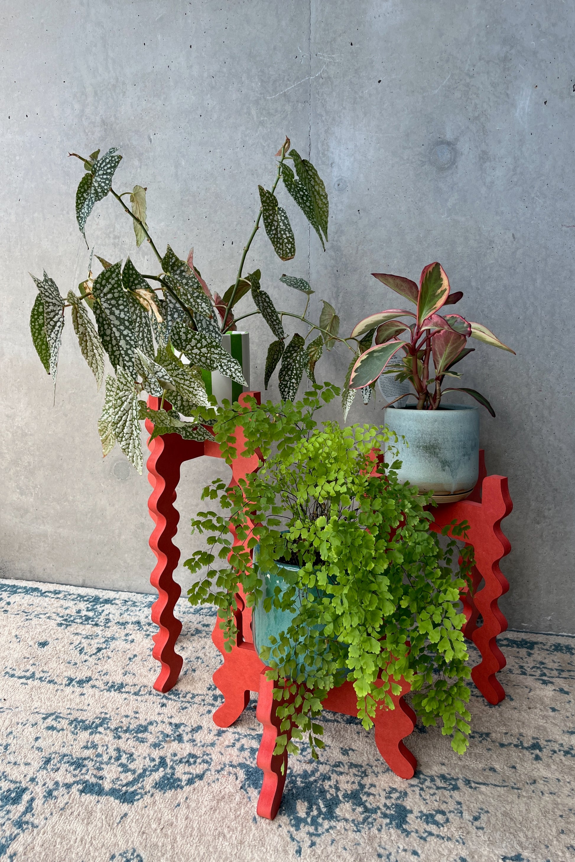 The Poppy 3 Stand Bundle combines Low Rider, Middie Wide and Tallboy Skinny to create an effortless layered plant arrangement. From a subtle 13cm lift to a striking 42cm elevation, this trio brings rhythm, depth and vibrant red energy to any space.